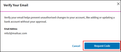 6. For security purposes, you need to verify your email address. Select Request Code to begin.